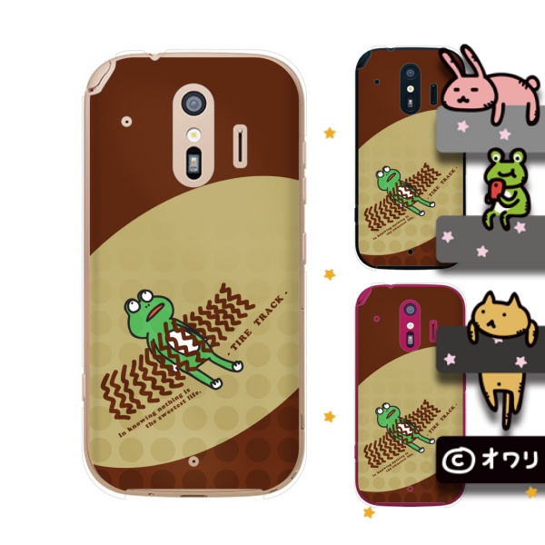 docomo らくらくスマートフォン me F-01L スマホ ケース カバー オワリ 「カエルとタイヤ跡」 レッド