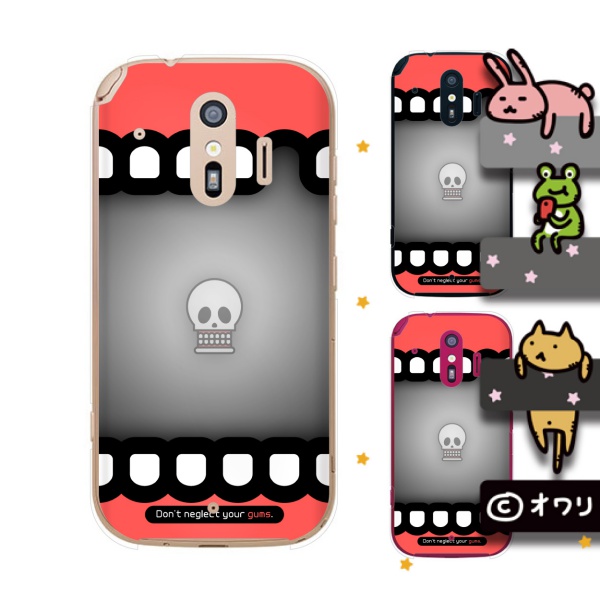 docomo らくらくスマートフォン me F-01L スマホ ケース カバー オワリ 「ドクロの歯茎」 グレー