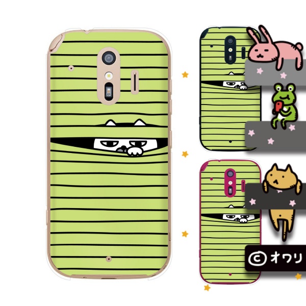 docomo らくらくスマートフォン me F-01L スマホ ケース カバー オワリ 「争奪戦 -ネコ-」 グリーン