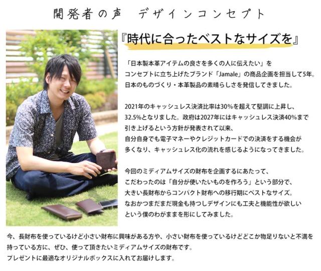 | ブランド紹介 | JAPAN MADE LEATHERの略。日本の職人の手で、日本の栃木レザーやこだわりをもってセレクトした革を使い仕立てられた革小物を取り扱っています。日本製の素晴らしさをより多くの人に知ってもらうために立ち上げた自社ブランドです。 |