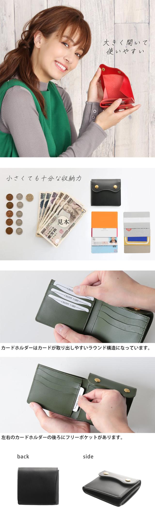 本革 財布 レディース ミニ財布 二つ折り Jamale 日本製 折り財布 ヌメ革 牛革 レザー コンパクト財布【名入れ 可能】(No.07000346)