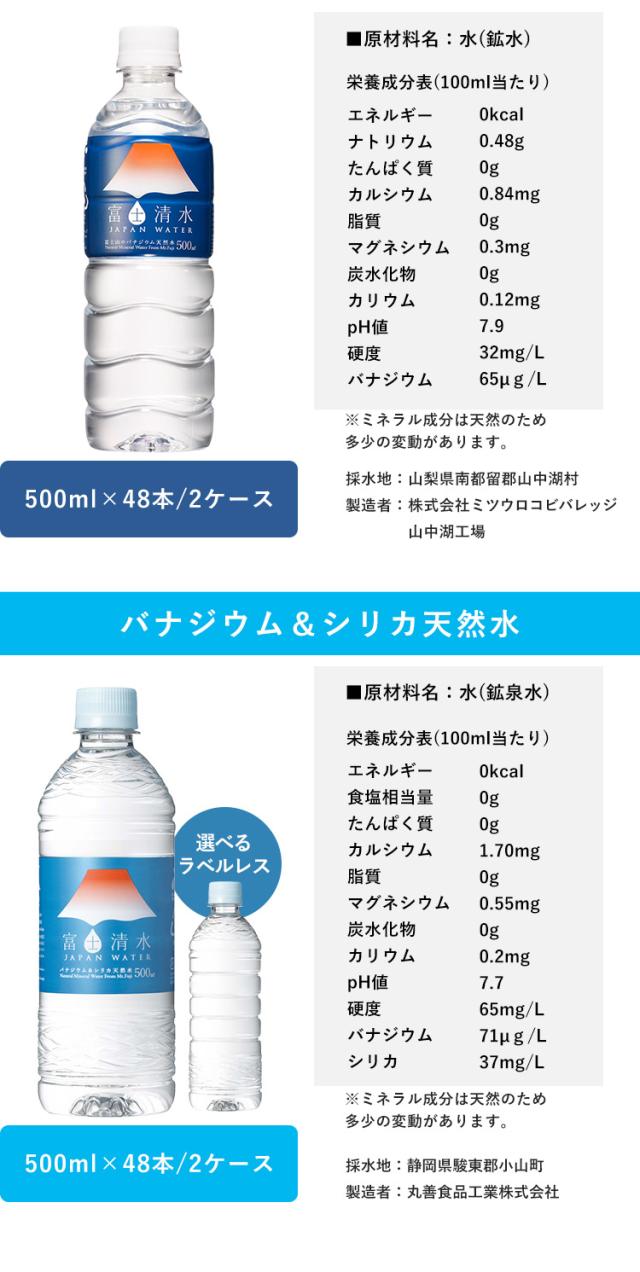 水 500ml 48本 送料無料 天然水 ミネラルウォーター 富士清水 JAPANWATER 500ml×48 【代引き不可】 バナジウム シリカ ラベルレス ミツウロコビバレッジ 保存 備蓄 防災 まとめ買い おすすめ 送料無料