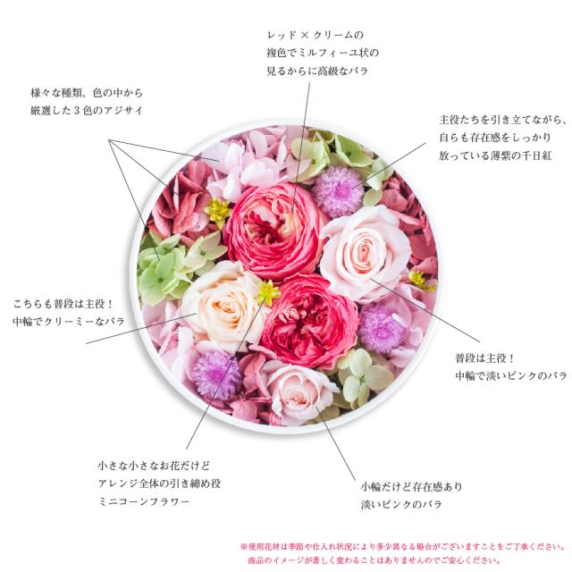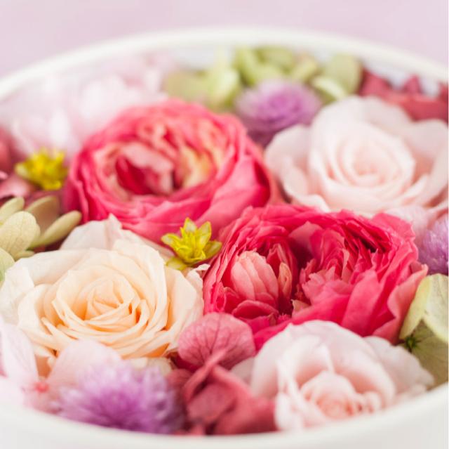 ・プリザーブドフラワー : ローズ、アジサイ、千日紅
