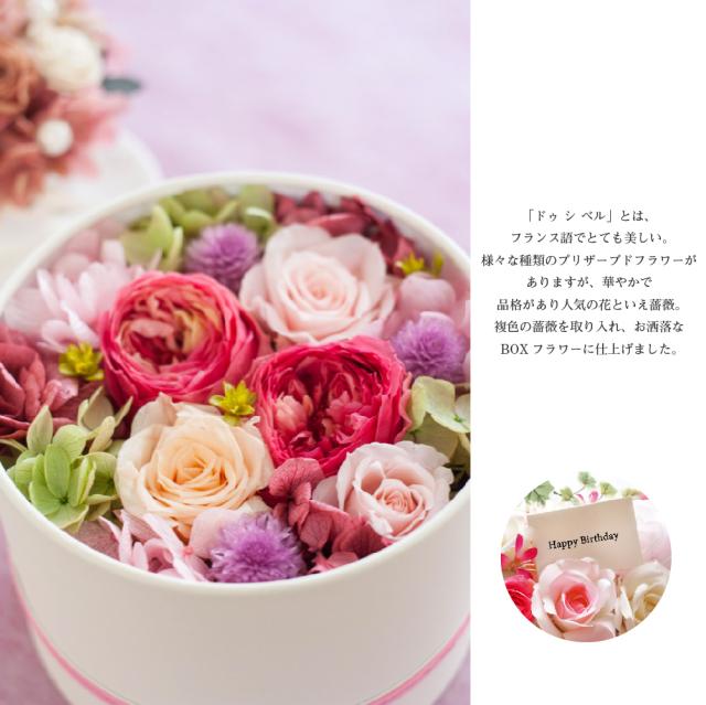 プリザーブドフラワー ボックス ギフト 『de si belles ドゥ シ ベル』 花 薔薇 バラ アレンジメント 誕生日 結婚祝い 開店祝い 結婚記念日 ブリザードフラワー プレゼント 贈り物 送料無料