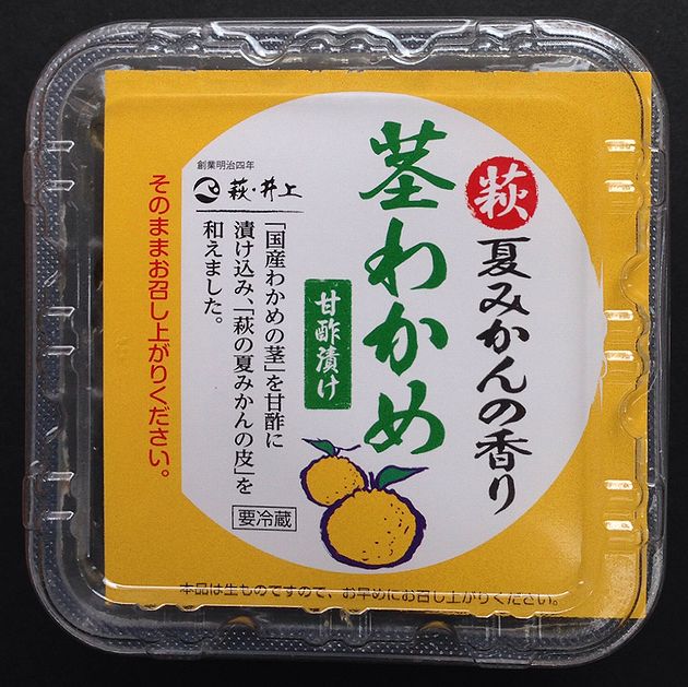 わかめ茎(国産)、醸造酢、砂糖、しょう油、干し大根、夏みかんの皮(山口県萩産)、食塩、唐辛子、調味料(アミノ酸等)