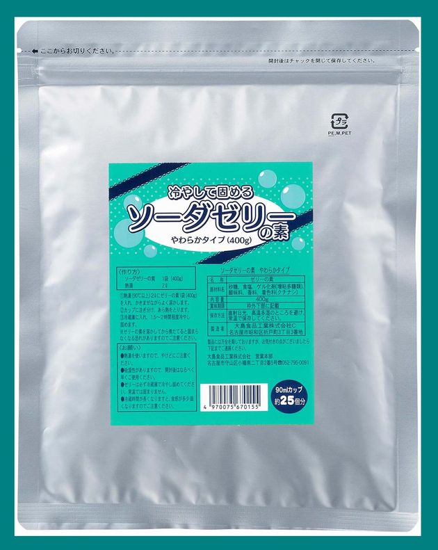 見た目もさわやかなソーダゼリーの素です。不使用)