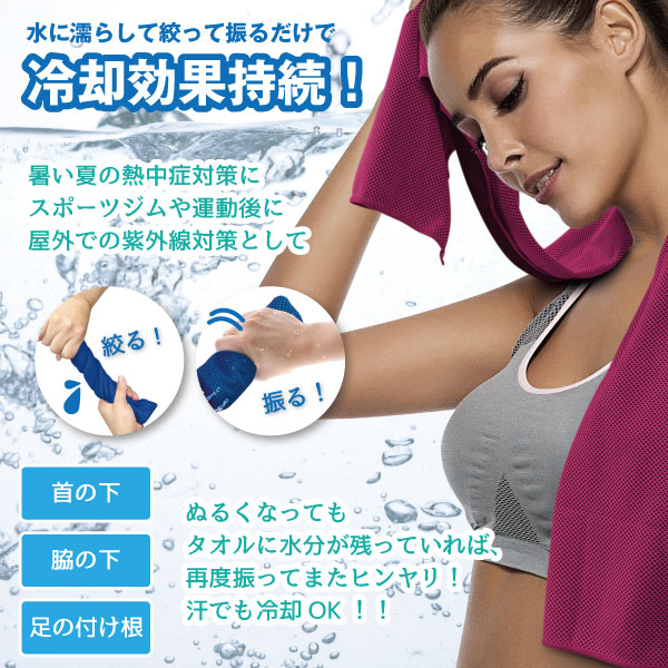 SELF COOLING TOWEL 冷感 ひんやり クール 水 冷却 熱中症 予防 防止 対策 暑さ 抗菌 洗える 振る アウトドア マラソン ランニング 濡らす 濡らして 紫 パープル 青 ブルー ピンク 30528 30529 30530 201904-02