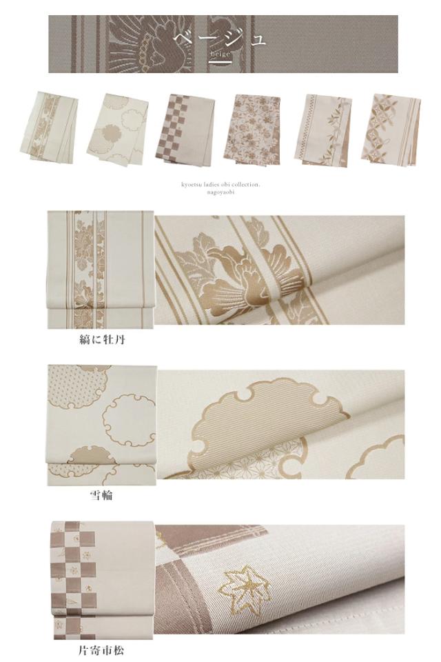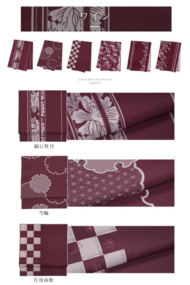 (日本製 八寸名古屋帯) 洗える八寸名古屋帯 小紋 紬 着物 袷 縞に牡丹 タズナ桜 紅葉 雪輪 片寄市松 桜唐草 竹市松 七宝