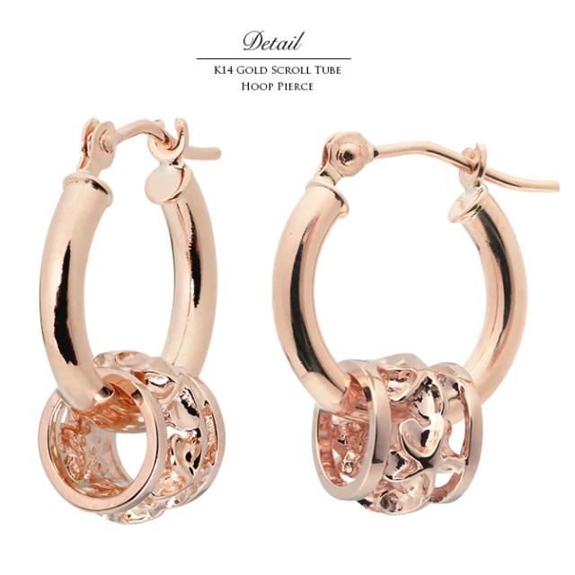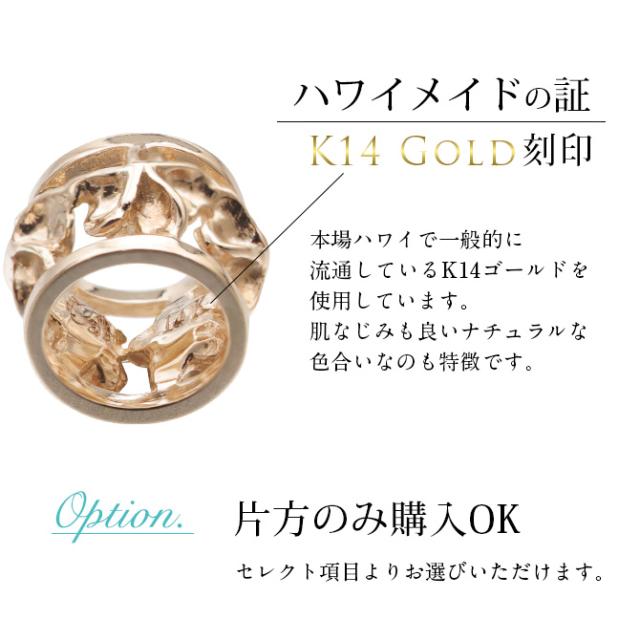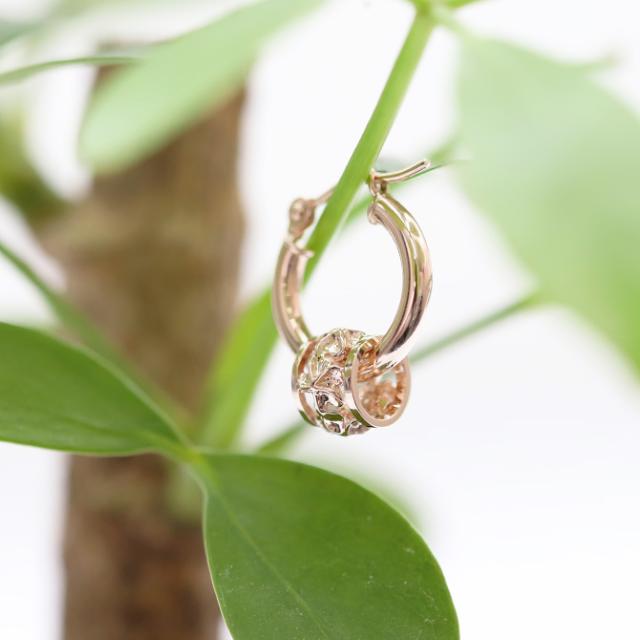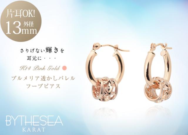ハワイアンジュエリー フープピアス ピアス ピンクゴールド ピアス 外径13mm クロッシングピアス プルメリア 透かし バレル 樽 小ぶり ゴールド 揺れる 片耳(1個)購入可 K14ピンクゴールド 20G ゲージ BY THE SEA バイザシー プレゼント バレンタイン 【品番:GE211R】
