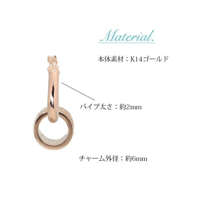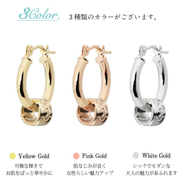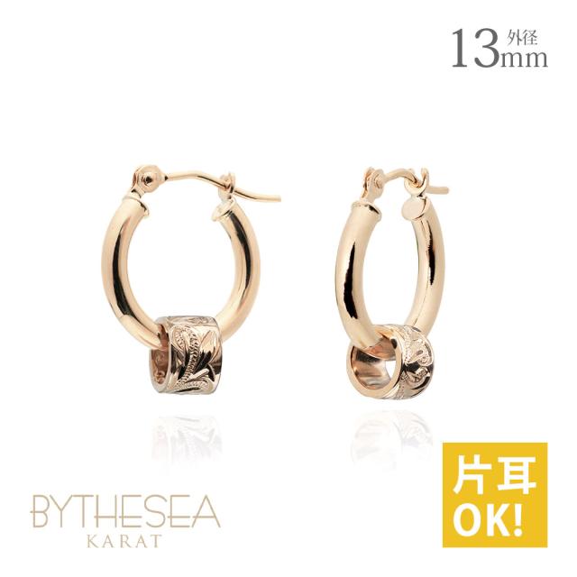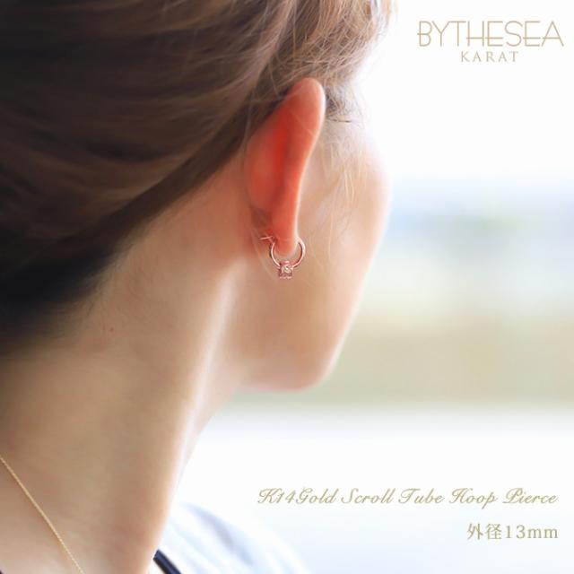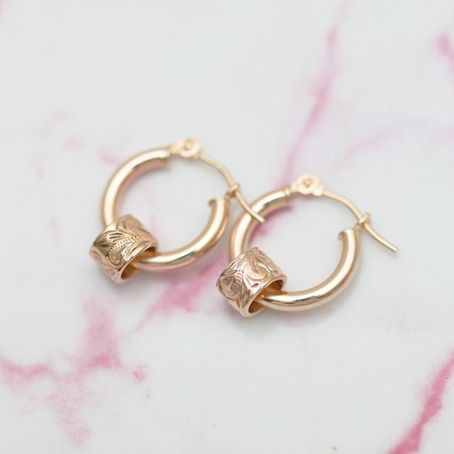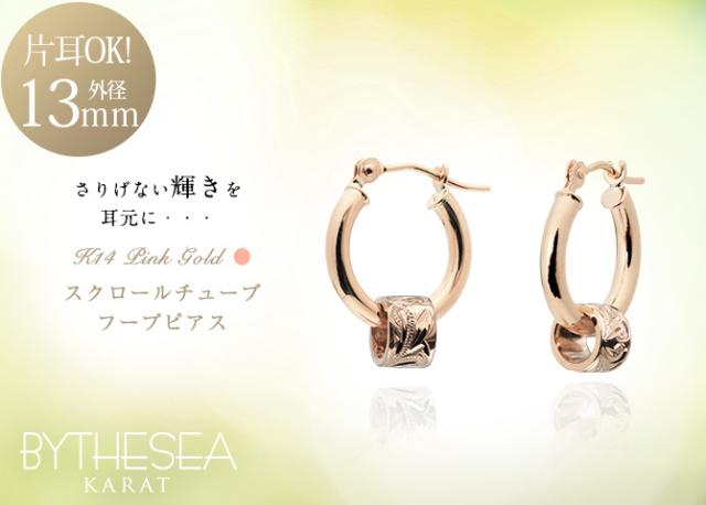 ハワイアンジュエリー フープピアス ピアス ピンクゴールド ピアス 外径13mm クロッシングピアス スクロールチューブ 小ぶり ゴールド 揺れる 片耳(1個)購入可 K14 14KPM2053 彼女 妻 女性 レディース プレゼント バレンタイン 【品番:GE213R】