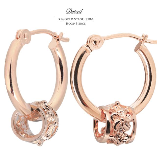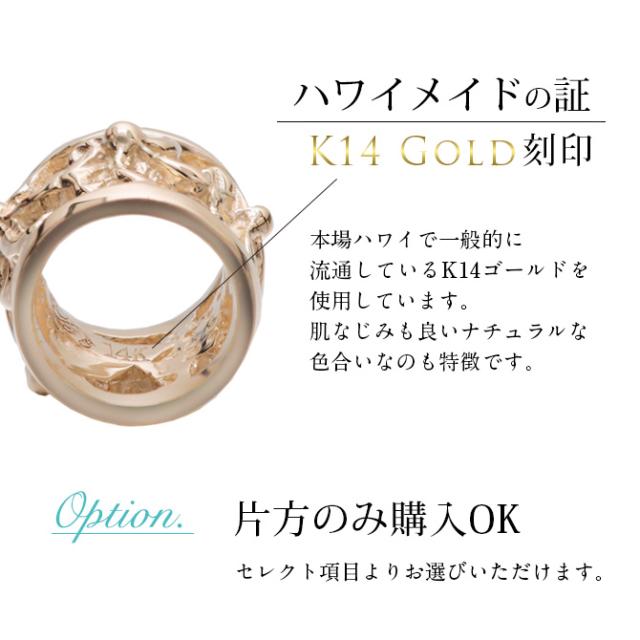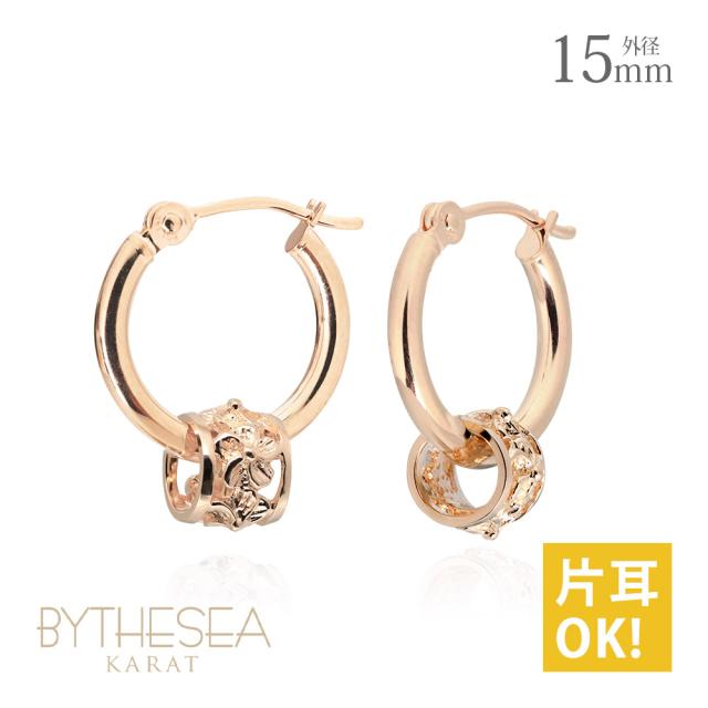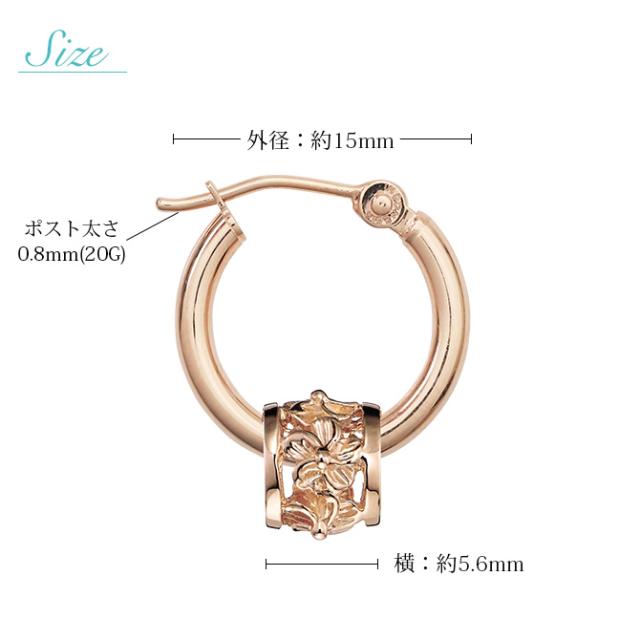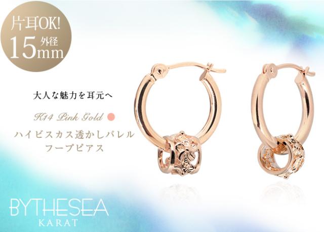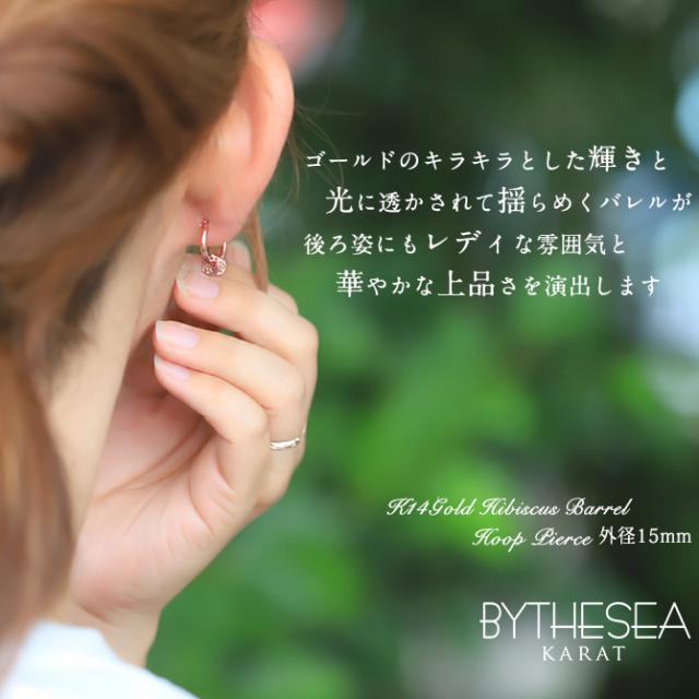 ハワイアンジュエリー フープピアス ピアス ピンクゴールド ピアス 外径15mm クロッシングピアス ハイビスカス 透かし バレル 樽 ゴールド 揺れる 片耳(1個)購入可 K14ピンクゴールド 14K 20G ゲージ BY THE SEA バイザシー プレゼント ホワイトデー 【品番:GE222R】