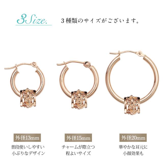 ハワイアンジュエリー 透かしハイビスカスバレル フープピアス 外径15mm