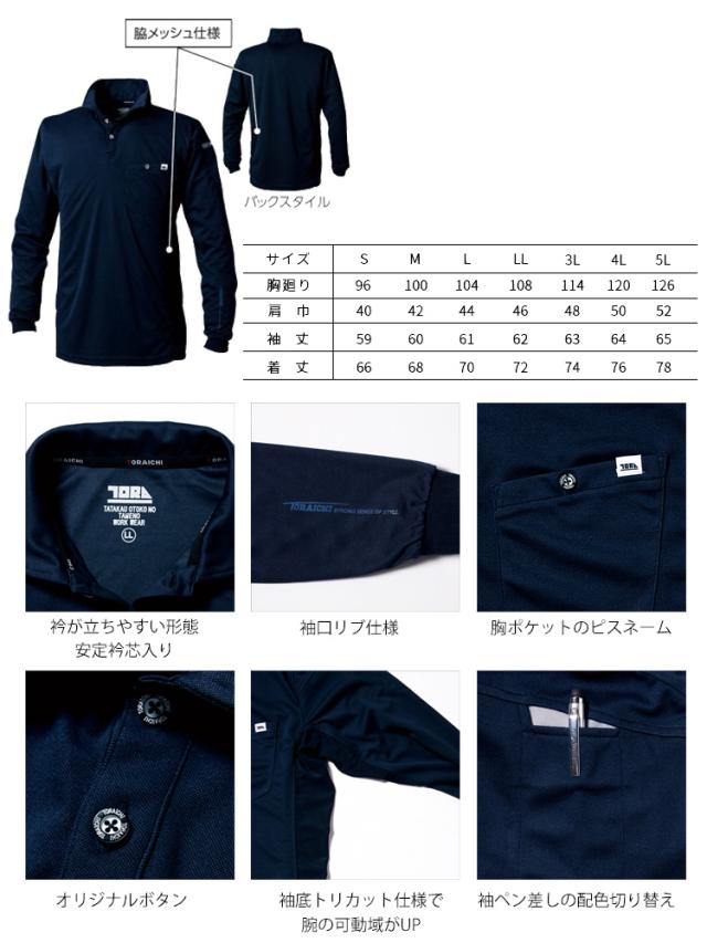 寅壱 TORAICHI トライチ長袖ポロシャツ 5949-614 大きいサイズ5L