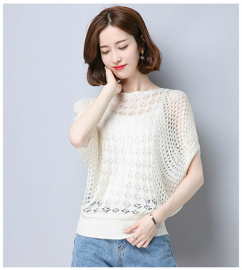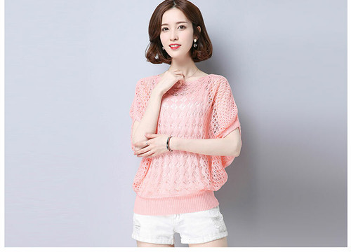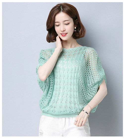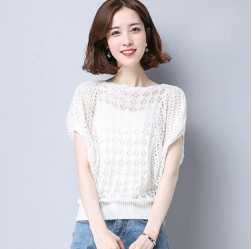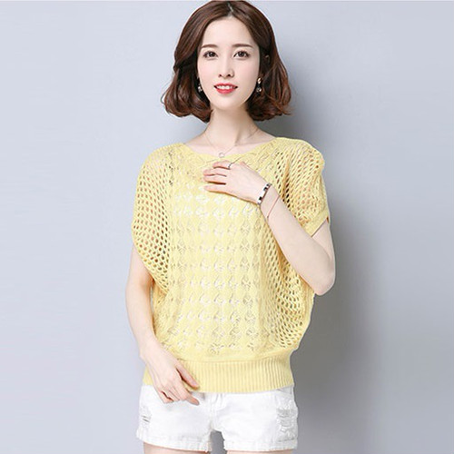 トップス サマーニット レディース 半袖 ゆったり 透かし編み 秋 レディース 秋 トップス 秋 2019 無地 シンプル イエロー グリーン ブルー ホワイト ベージュ ブラック ピンク かわ大