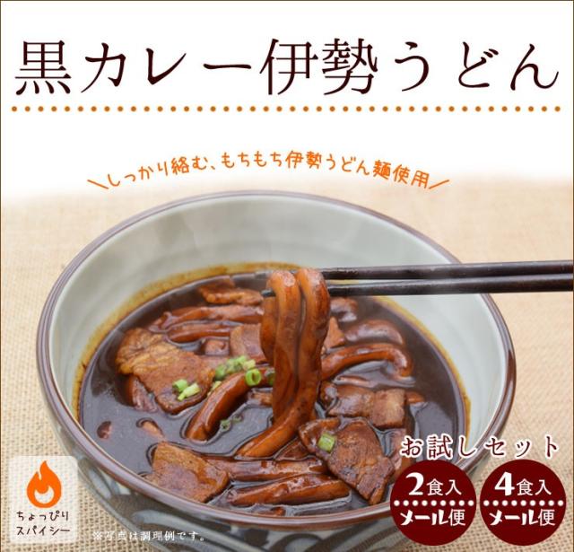 黒カレー 伊勢うどん お試し 2食入 メール便 送料無料 伊勢 名物 伊勢うどん 太麺にカレールーが絡む 10種のスパイスと和風だし NP