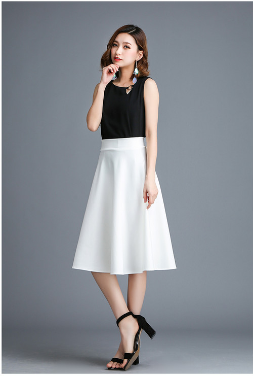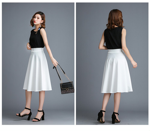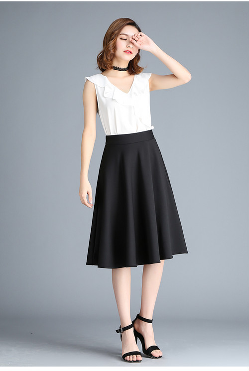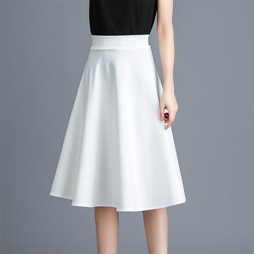 ハイウエスト スカート シンプル キレイめ フレア 大人女子 膝下 ドレープ 通勤 オフィス ブラック ホワイト お呼ばれ