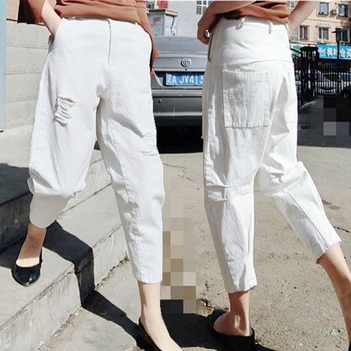 パンツ ダメージ加工パンツ ホワイト ブラック ベージュ イエロー 大きいサイズ カジュアル メンズライク かわ大
