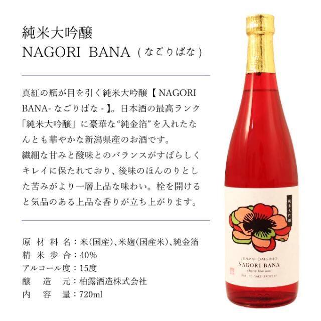日本酒 新潟県産純米大吟醸 NAGORI BANA -なごりばな- 純金箔入り ギフト プレゼント 退職祝い 結婚祝い 内祝い 男性 女性 上司 誕生日 還暦祝い 古希祝い 喜寿祝い 開業祝い 快気祝い 昇進祝い 新築祝い 贈答品 新潟地酒