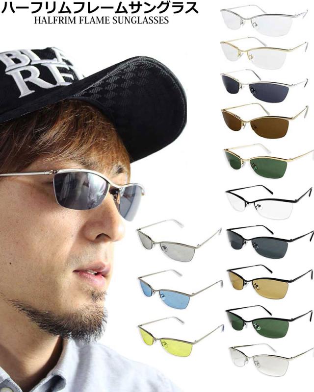 強面 ハーフリムフレーム サングラス スクエア チョイ悪 ヤンキーサングラス オラオラ メタルフレーム メンズ レディース