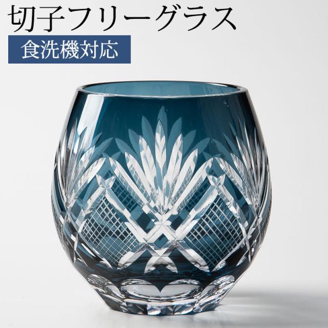 切子グラス エッグ タンブラー ビアグラス ビールグラス コップ おしゃれ ガラス 松剣 インクブルー 青藍 食洗機対応 k_name