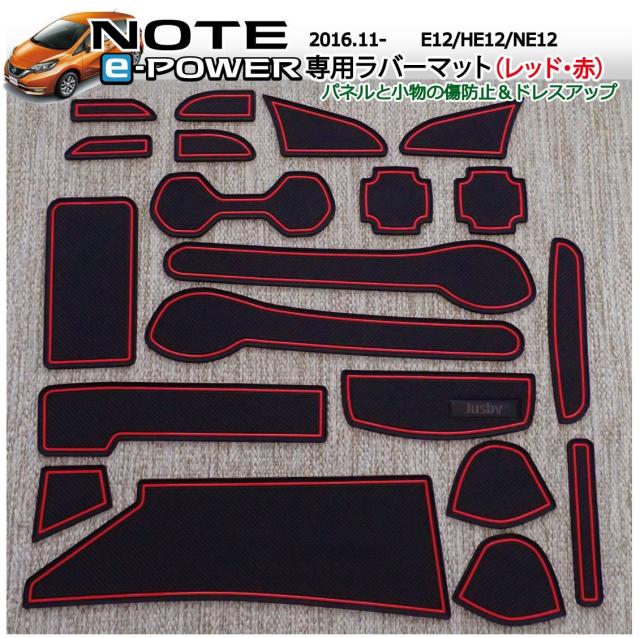 2016.11- ノート e-POWER専用インテリアラバーマット(赤色/RED)になります。 ※別途 白色タイプも販売しております。