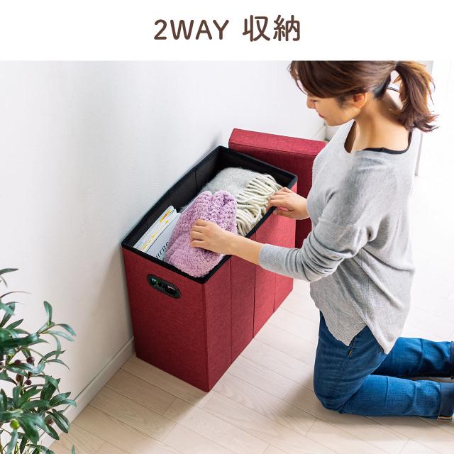 ⇒ご購入の前にご確認下さいお部屋に散らばる小物や雑誌などを片付けられる収納スツール。リビングや子供部屋、玄関などの小物の整理や急な来客時の椅子として最適。座面を外さずに収納物を出し入れできる。使用しない時は折りたたんでコンパクトに収納。持ち運びしやすい持ち手つき。【WEB限定商品】