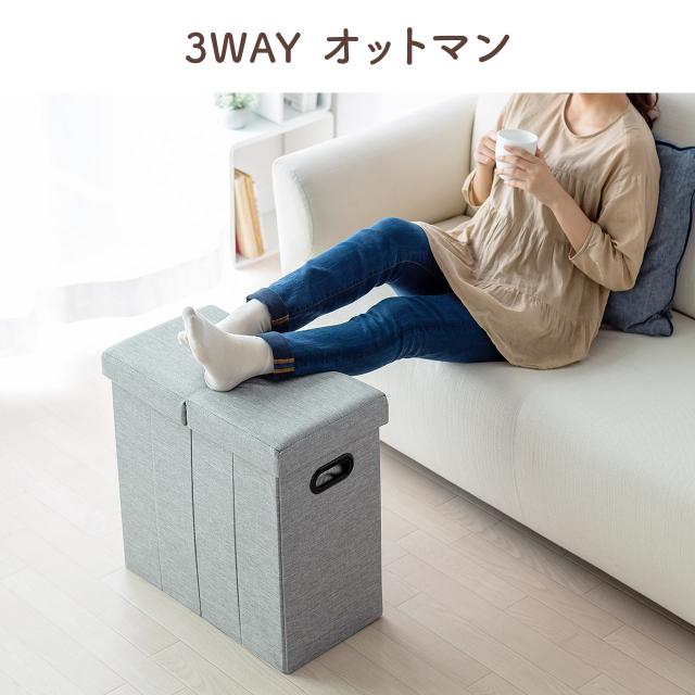 ●長方形のボックス型収納スツールです。●スツール、収納、オットマンの3通りの使い方ができます。