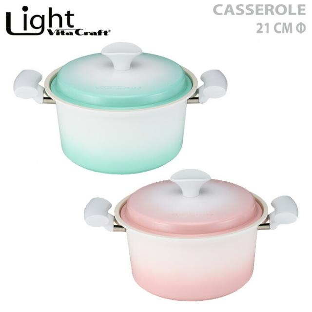 ビタクラフト ライト 両手鍋 21cm 無水鍋 セラミックコーティング IH対応 グリーン/ピンク【無水調理鍋 ベイパーシール/Vita Craft Light/アルミ セラミック/アピデ/送料無料】