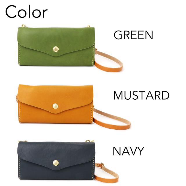 お財布ポシェット ポーチウォレット CHAM チャム 姫路レザー 栃木レザー レディース 横長 2Way クラッチバッグ ミニショルダーバッグ 本革 日本製 牛革 女性用 婦人用 メイドインジャパン 送料無料 緑 グリーン