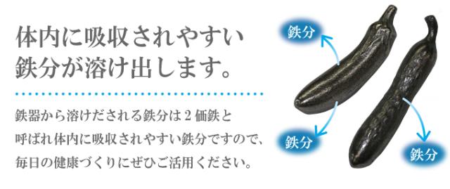 手軽に鉄分を補給できる便利アイテム。水を沸騰させるときに一緒に入れておくと、鉄分が溶け出し簡単に鉄分を摂取できます。ぬか床に入れれば、ナスの発色をよくしたり、鉄分を摂取できます。[商品サイズ(約)]きゅうり/1.5×1.5×9cm、なすび/2×2×9cm[個装サイズ(約)]19×8×2cm[商品重量(約)]きゅうり/110g、なすび/180g[材質]鉄[生産国]日本