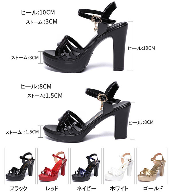 12サイズ サンダル 厚底 太ヒール ベルト 大きいサイズ コンフォートサンダル ハイヒール ストーム サンダル ヒール10 ヒール8