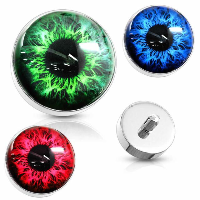 悪魔の目玉をモチーフにしたグリーンとブルーとレッドカラーの眼を内ネジタイプのボディピアス用キャッチ。