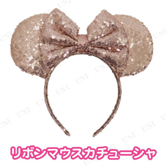 コスプレ 仮装 マウスカチューシャ リボン(シャンパンゴールド) ユニエンタープライズ プチ仮装 コスプレ小物 小道具 ヘアアクセサリー 動物 アニマル フリーサイズ 子供 リボン付き スパンコール