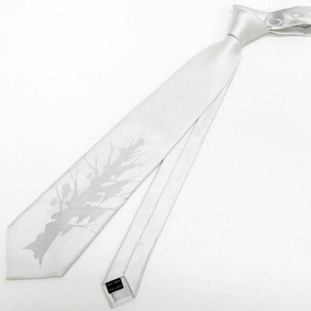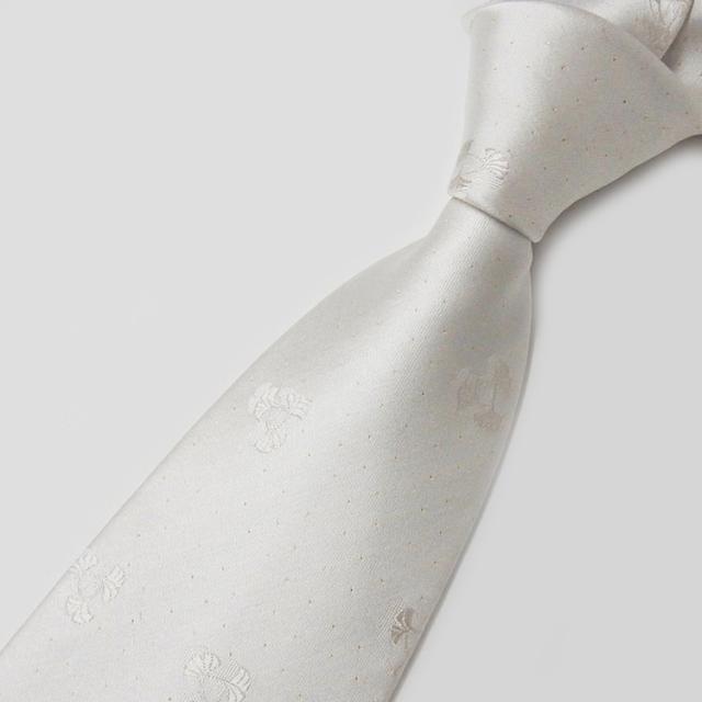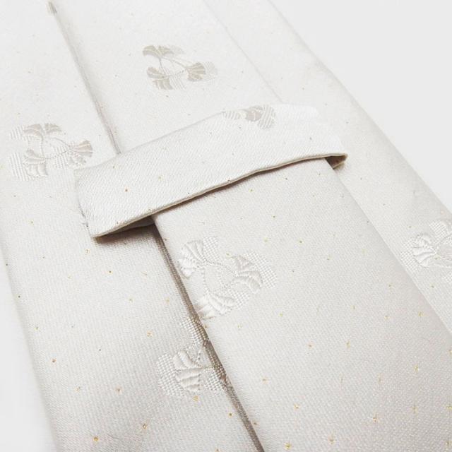 西陣織 受注生産 フォーマルネクタイ 24金ラメ糸 白 銀杏/飛び柄 シルク100% 礼装 日本縫製 NJ-P02