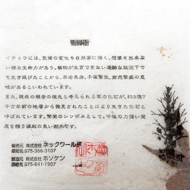 イチョウには気候の変化や自然害に強く想像もできない様な生命力があり、植物が生育できない過酷な環境下でも生き延びることから、不老長寿、子孫繁栄、商売繁盛の意味があるとされています。