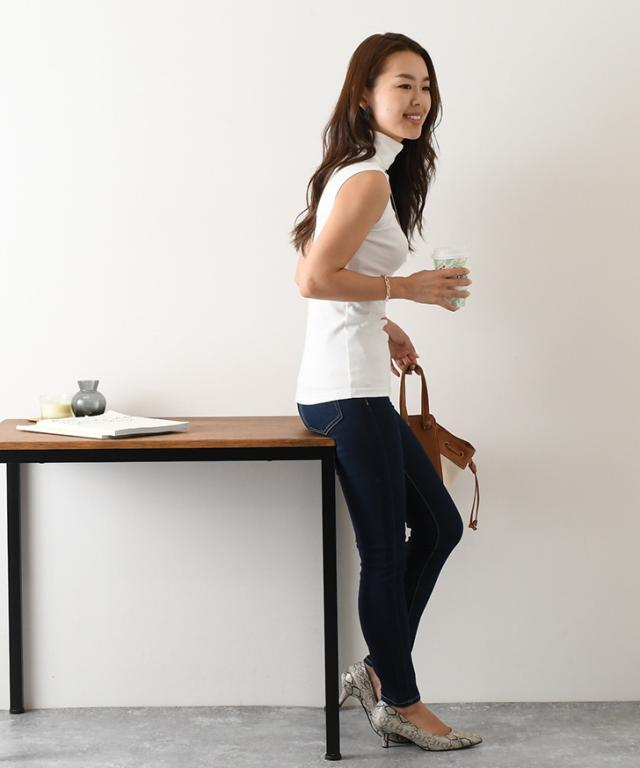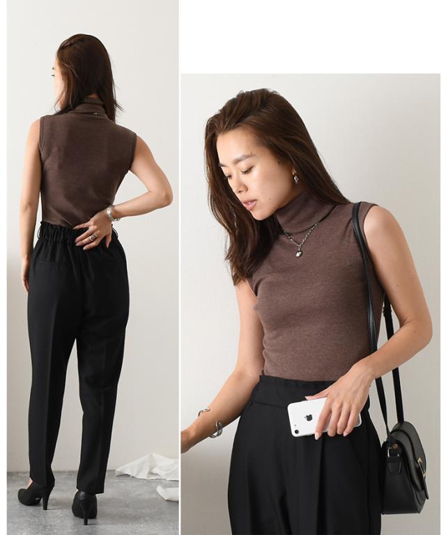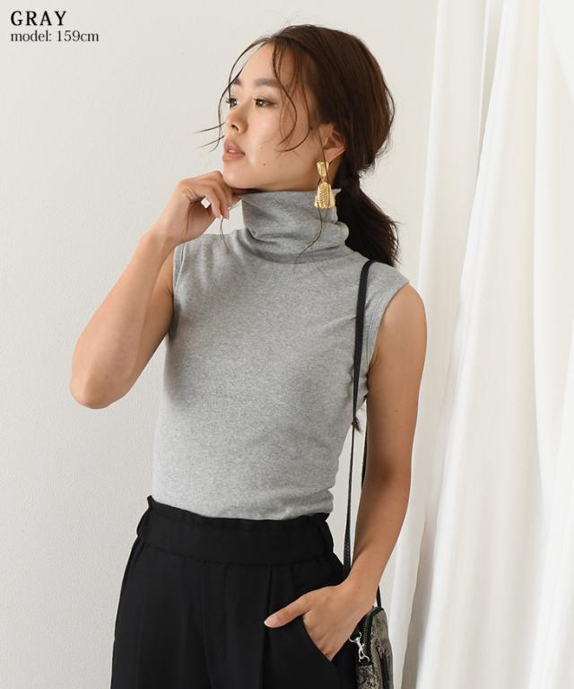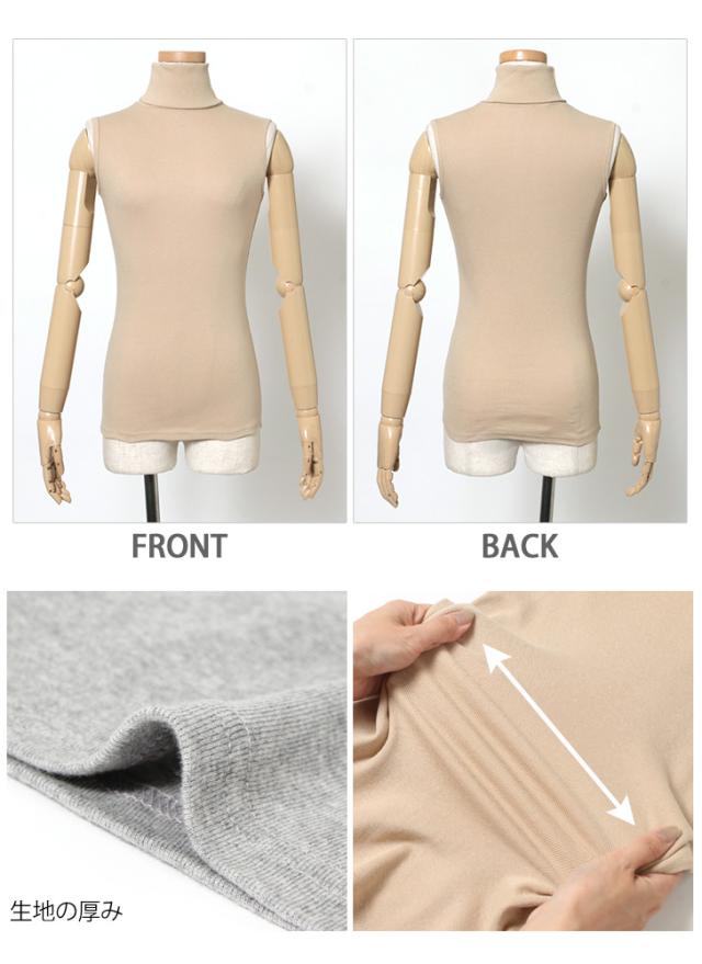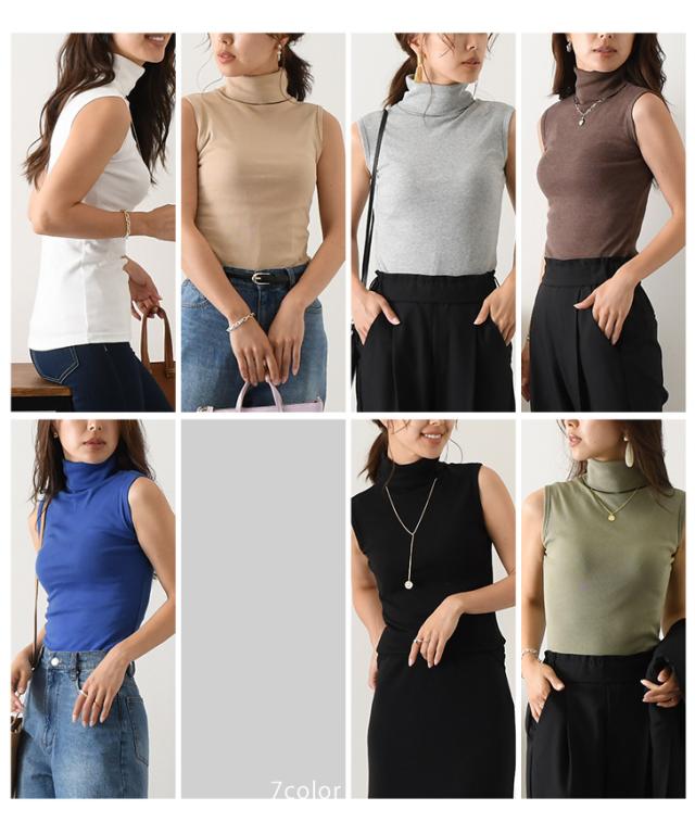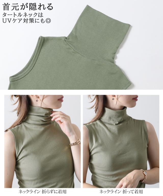 カットソー レディース タートルネック ノースリーブ トップス インナー タンクトップ Tシャツ フィット 細身 ハイネック 秋新作 無地