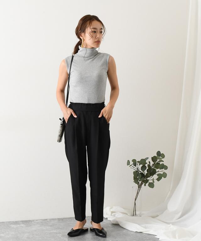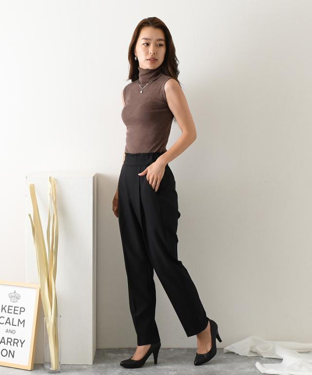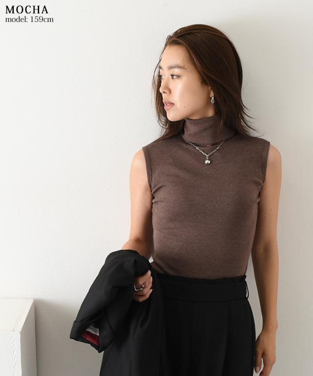 タートルネックベーシックノースリーブカットソー レディース トップス インナー タンクトップ Tシャツ フィット 細身 ハイネック レイヤード 重ね着 きれいめ カジュアル シンプル 袖なし 無地 春夏 秋冬 wft04520