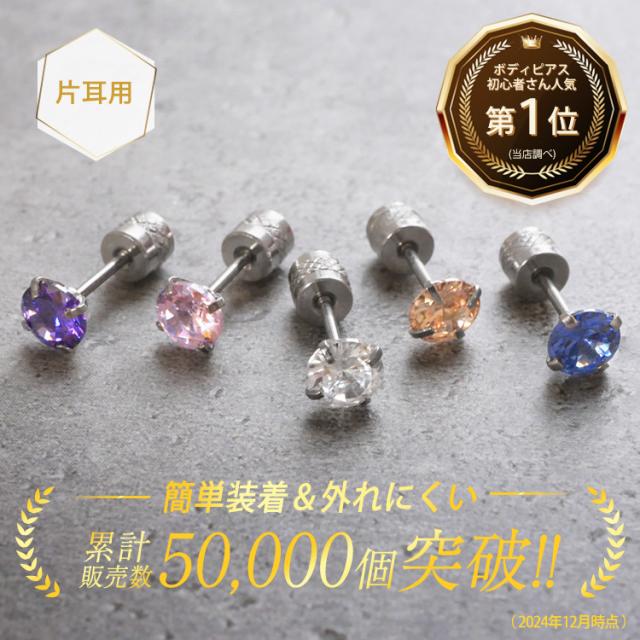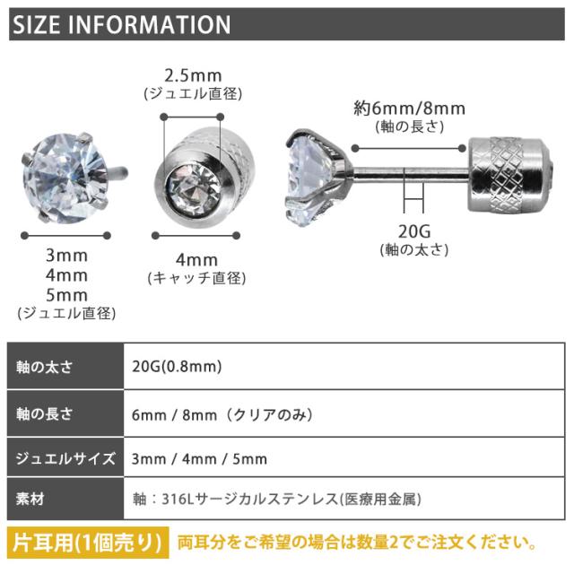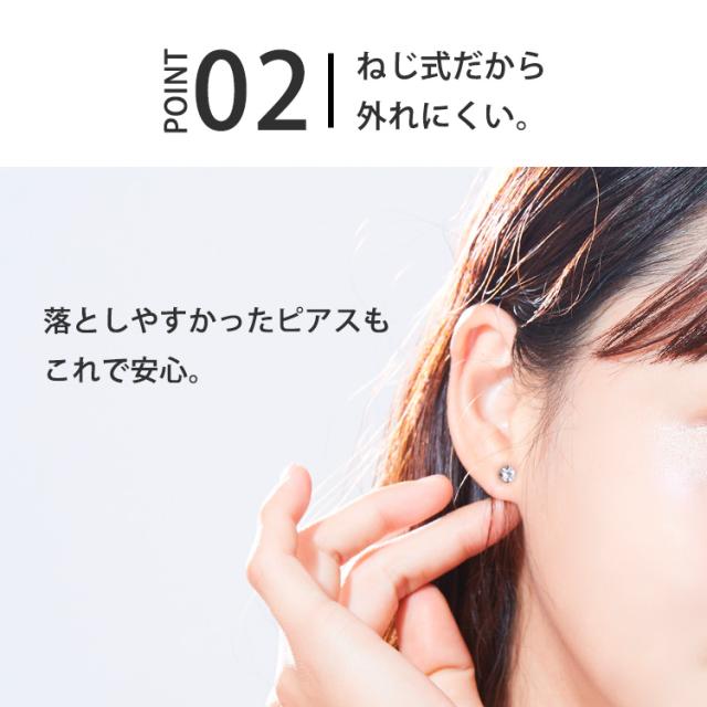 初めてのボディピアスにおすすめの20Gサイズ。ボディピアスの良いところを残しつつ、普段、普通のピアスを使っている方にもお楽しみいただけるピアスが誕生しました。「太くて入らない」「ホールに通しにくい」「キャッチが付けにくい」を解決し、ビギナーの方にも取り扱いやすいピアスです。表側は立爪セット、キャッチ側はベゼルセットなので、裏表を逆にすればリバーシブルで2種類のデザインが楽しめます。シンプルな形状で、裏側から軸が飛び出さないネジ式なので、着けっぱなしやファーストピアスにもお勧めです。