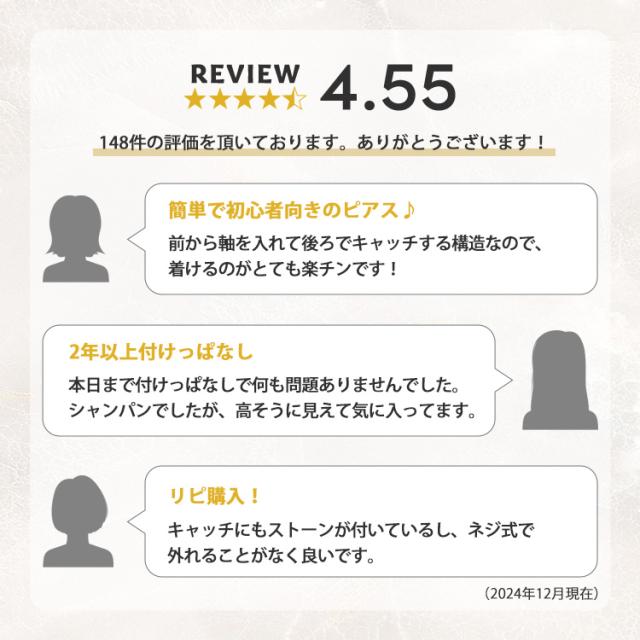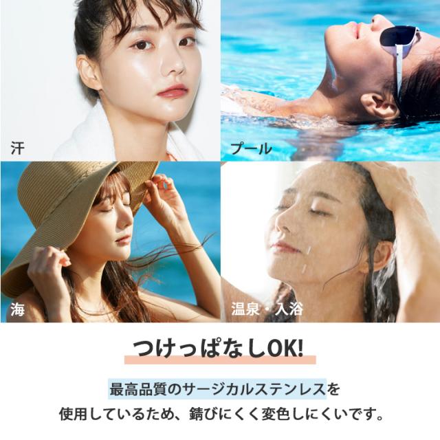 - つけやすく外しやすいです。 アレルギーでいつも耳が痒くなったり膨れたりしましたが、こちらの商品は痒みも腫れもなく、つけっぱなしで大丈夫でした。