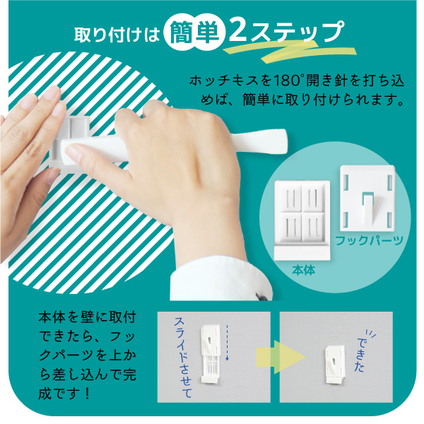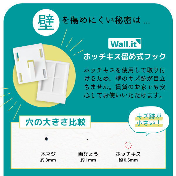 ※付属の壁掛けフックは石膏ボード専用です。石膏以外の壁の場合、うまく固定できない可能性がございます。