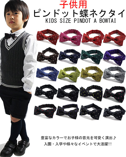 お子様用 水玉柄 蝶ネクタイ キッズ ピンドット 日本製 子供入園式 卒園式 入学式 卒業式 結婚式 ステージ衣装 発表会