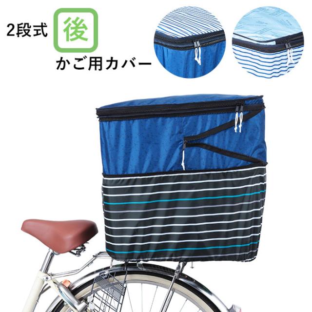 自転車 カゴカバー 後ろ 通販 おしゃれ 大きい 後ろカゴ カバー 撥水 はっ水 自転車カゴカバー 2段 2段式 二段 二段式 バスケットカバー 折りたたみ かわいい シンプル ボーダー ネイビー 青 ブルー 大型カゴ対応 Pluie Benite プリュイベニット オリンパス ORINPAS