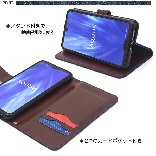 スマートフォンケース AQUOS R3 SH-04L SHV44 808SH用 手帳型 デニムデザイン シンプル 可愛い カジュアル スマホカバー 装着簡単 お洒落 横開き denimケース ジーンズ