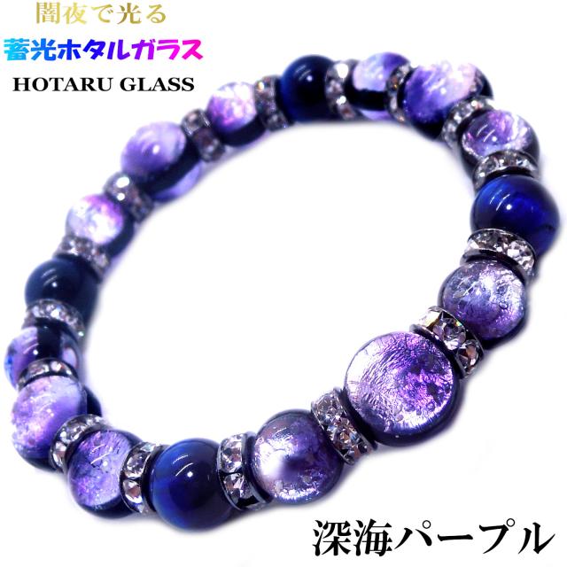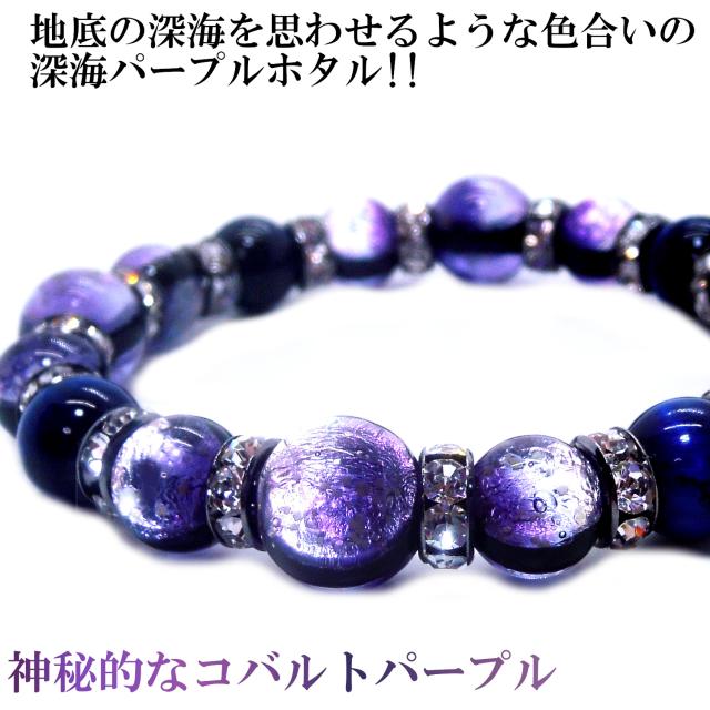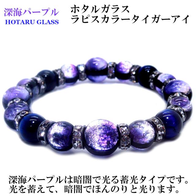 【送料無料】光る ホタルガラス (深海パープル)12&10mm ラピスカラー タイガーアイ 10mm パワーストーン ブレスレット メンズ 天然石 虎目石 沖縄 土産 プレゼント
