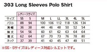バートル 作業服/作業着 303 長袖ポロシャツ SS〜5L 男女兼用