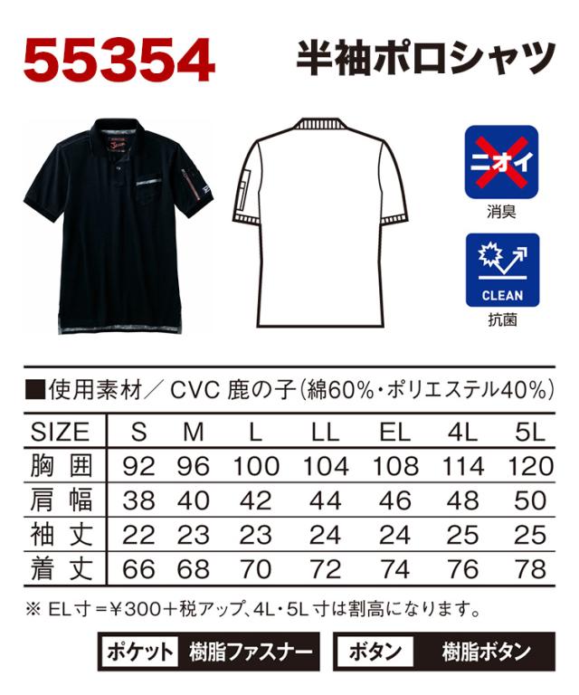 自重堂 Jawin 55354 半袖ポロシャツ EL 作業着・作業服