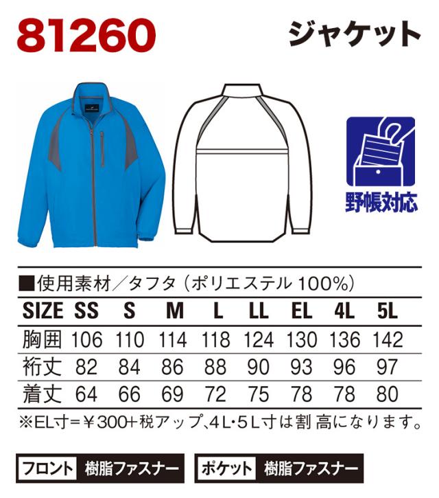 男女兼用 自重堂 81260 カラージャケット 3L 作業着・作業服