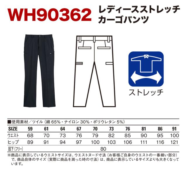 自重堂 WH90362 レディースストレッチカーゴパンツ 59〜91 作業着・作業服