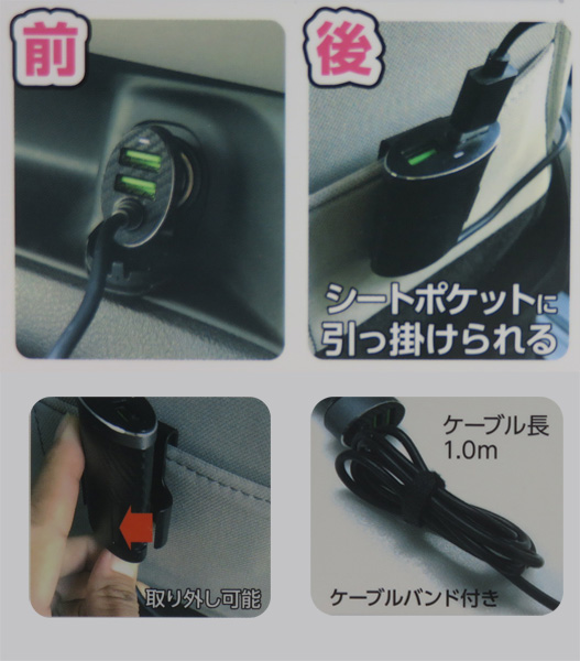 ●シガープラグ部にUSB×2ポート、後部座席用アダプタにUSB×2ポートのセパレートタイプ。