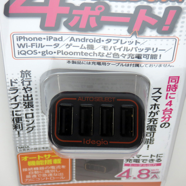 アークス X-222 4.8A パワー4ポートUSBチャージャー シガーソケット DC12V/24V車共用 USBポート オートサーチ スマホ充電 X-222